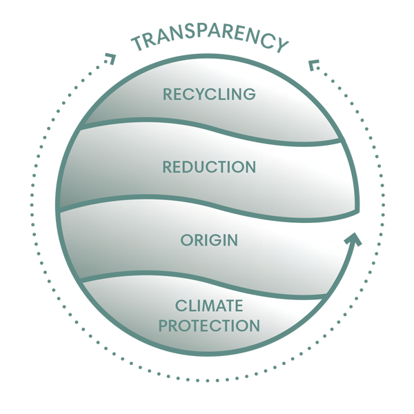 Packaging can only be used again for reprocessing if it ends up in the right recycling loop. That’s why we have included an overview in our sustainability brochure that shows the individual packaging components and lists how they can be disposed of correctly.